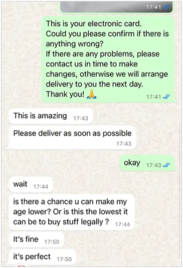 Using UV or black light, the card will reveal a specific pattern or marking that matches the appearance of a real ID card.