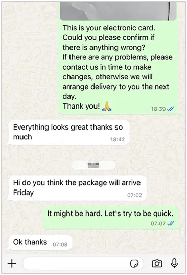 Get the tracking number sent by our customer service and wait for the package to arrive.