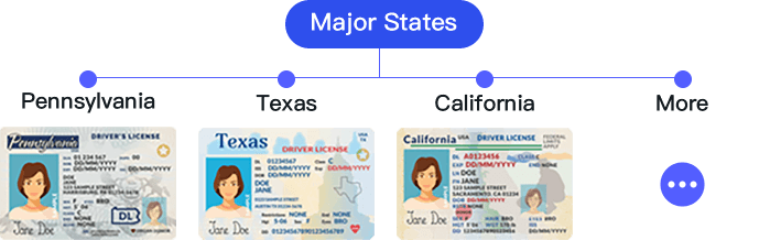 Including Address, Photo, Signature, DOB, EXP, ISS, DLN, DD, CLASS, etc